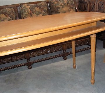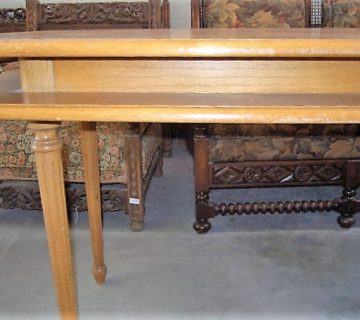 Importante mesa multifunción de diseño, años 50. Madera de roble natural. Mesa multifunción, para despacho, juntas o comedor u otros usos, en madera de roble natural, plumeado. Doble cajón externo en todo su contorno corrido. Ligeramente ovalada en sus cuatro lados. Ver fotografías Medidas: 1,90 m. de largo por 0,90 m. de ancho en sus […]